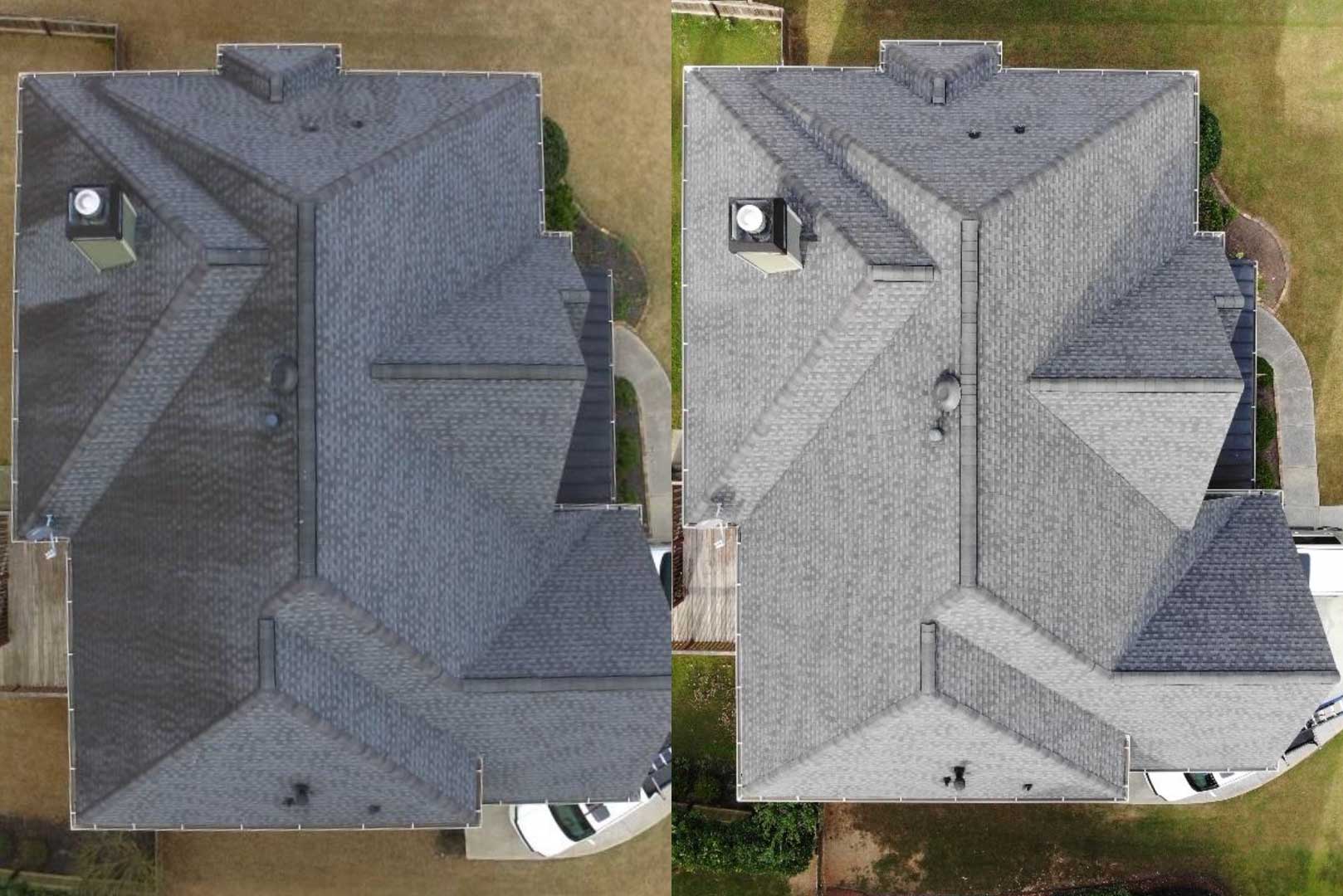 Don't replace your roof - renew your existing roof by having ClearView professionally clean it. Chances are your roof is in good condition and only needs a good cleaning. Roof cleaning is a crucial part of a proper home maintenance routine. Not only will the roof look brand new but you can relax in knowing your shingles will live out their full life. The black stains you see on your roof is a bacteria called Gloeocapsa magma. This type of bacteria feeds on the limestone filler in shingles. If left untreated it will drastically decrease the life of your roof. Our preferred soft wash method will safely remove all stains from your roof providing 100 percent results. Our non pressure roof cleaning methods are approved by American manufacturers association/tamko gaf and will not void your warranty or damage your shingles.